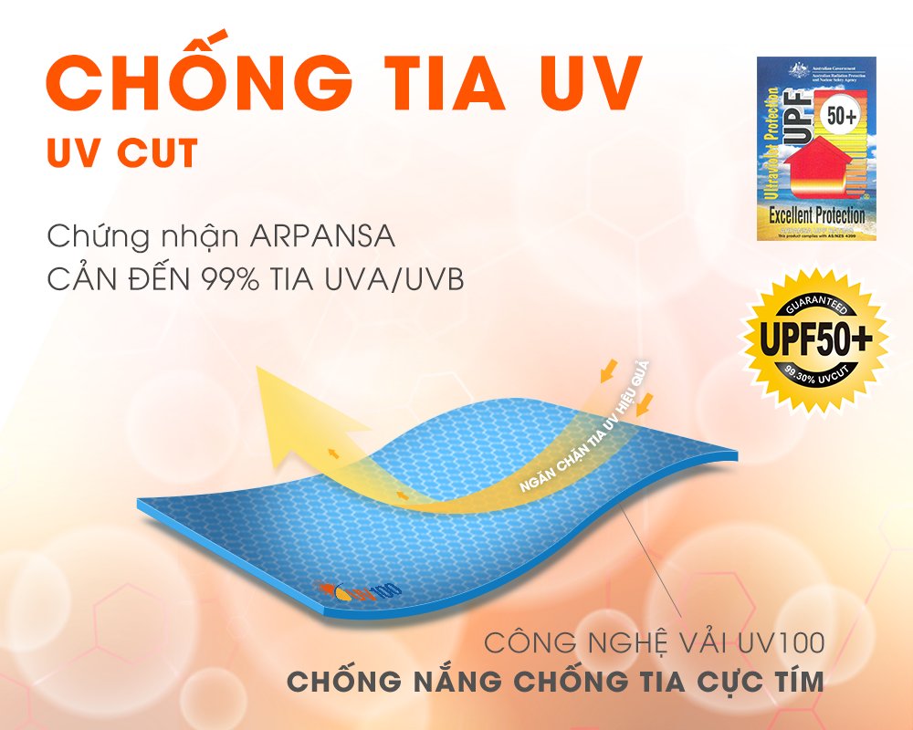 UV100 là thương hiệu chống nắng chuyên nghiệp với hơn 10 năm hoạt động và phát triển tại thị trường Việt Nam. Mỗi sản phẩm của UV100 đều được tổ chức ARPANSA (Úc) kiểm nghiệm và cấp chứng nhận đạt chỉ số chống nắng UPF50+ (Chỉ số chống nắng cao nhất trên vải), với tỉ lệ che chắn lên đến hơn 99%..