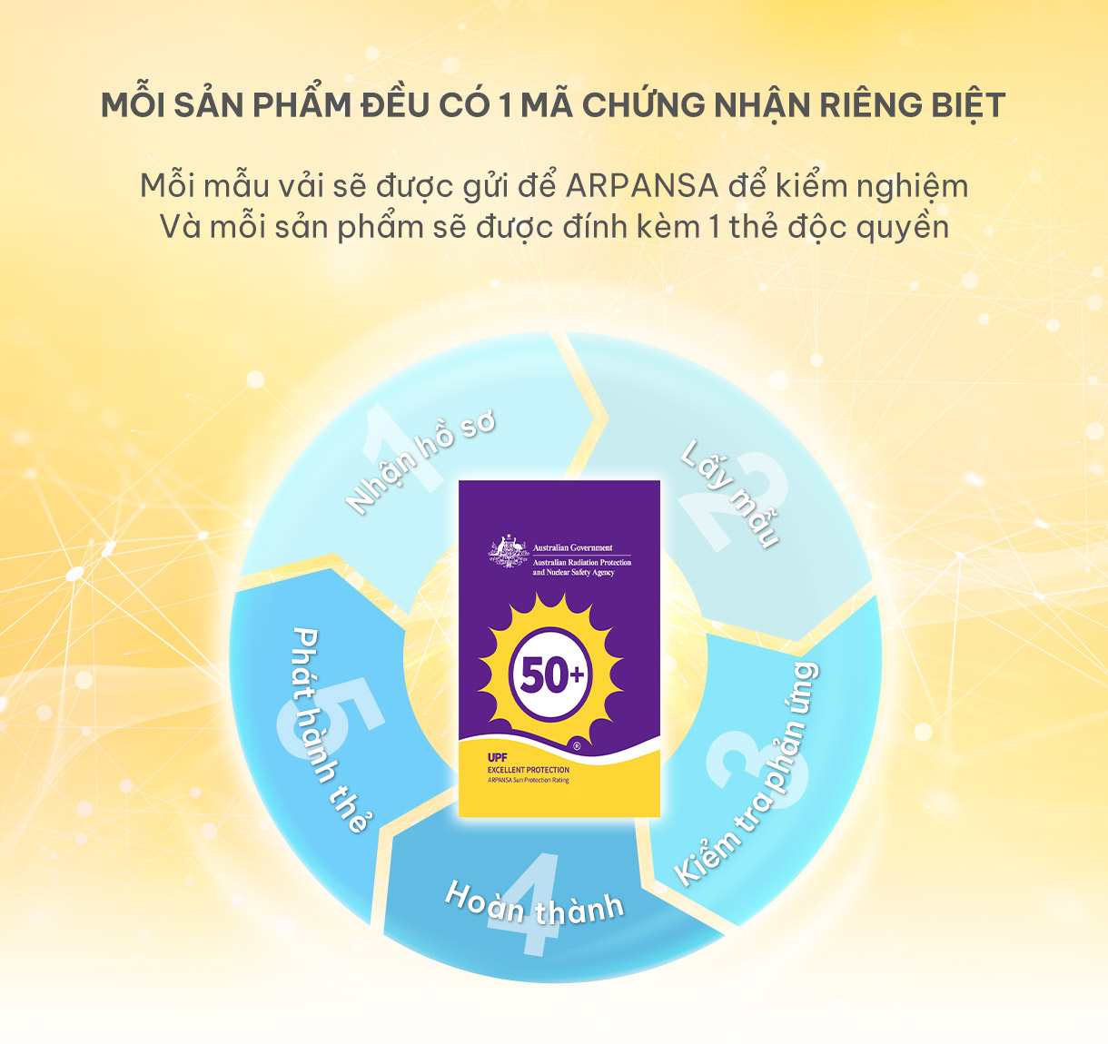 Chúng tôi đã gửi các sản phẩm của mình đến Úc để tiến hành thử nghiệm, nơi đặt trụ sở của cơ quan chống tia cực tím quốc tế ARPANSA.